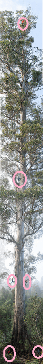 Our snip from the ABC article attached shows the scale of the tree – with people climbing it circled in pink.