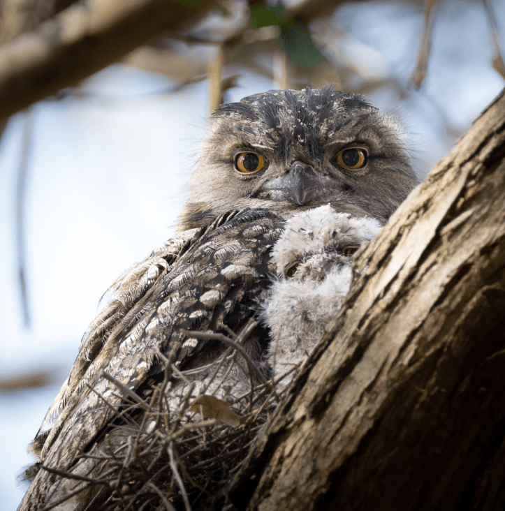 Be aware though, nocturnal birds such as our Tawny Frogmouths, generally do not feed their chicks during the day, but the parent birds should be close by to protect the chick.