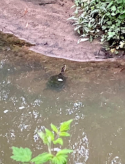 They spotted the turtle in Kalang Park at the sharp bend in the creek, adjacent the Billabong area, fairly close to the path. They used to be often seen on a similar sharp bend in Furness Park close to the track leading to Gardenia Street where there are rocks for sunbaking.