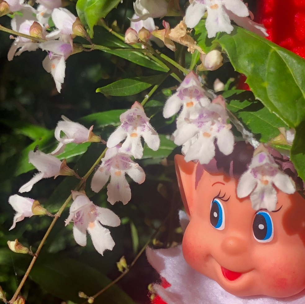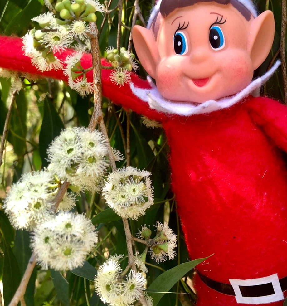 Unfortunately, Lisa’s photo of a Victorian Christmas Bush in the park was photo-bombed by a very cheeky Christmas Elf…