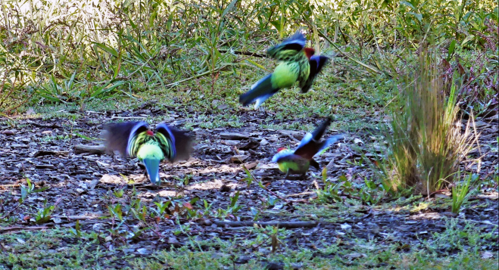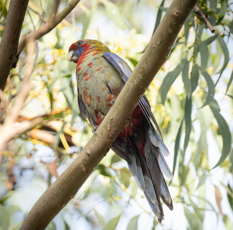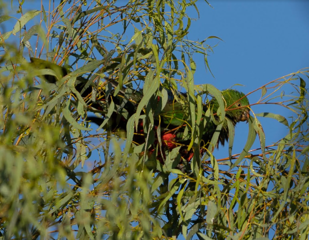 The Australian King Parrot photo isn’t great, but Pat taught us a really interesting fact about parrots “bathing” in the raindrops at the tops of the trees, and we had good opportunities to see the King Parrots doing this, and the Musk Lorikeets preening after doing this – fascinating!