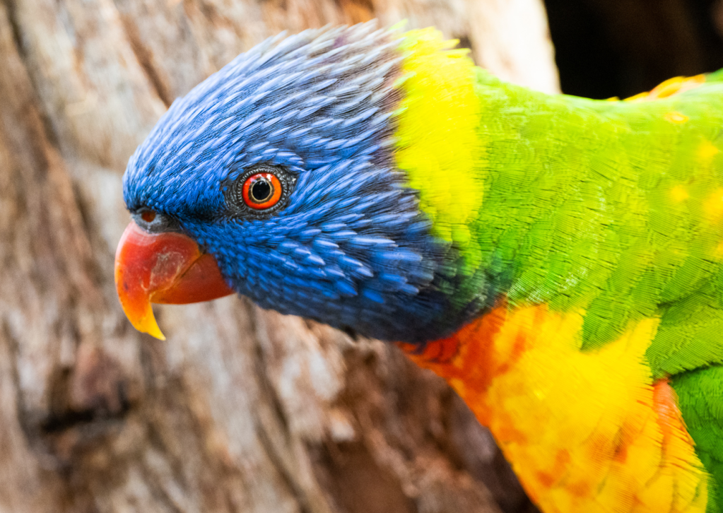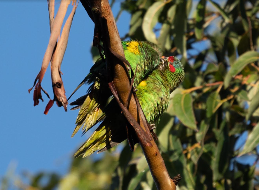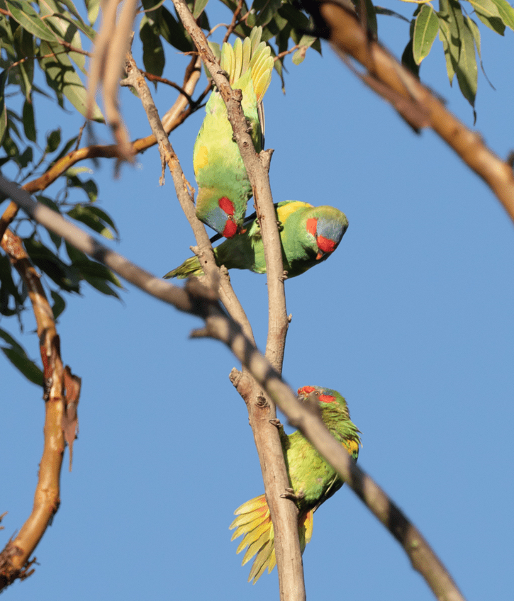 Note the Crimson Rosella with juvenile plumage [the adult is shown alongside]. The Musk Lorikeets were displaying nicely in the morning light too.