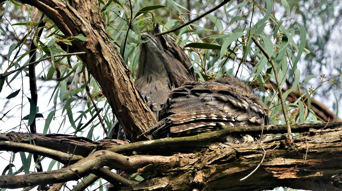 Note the hole in the branch where the prized morsel was. Russell’s photo shows what short work they make of shredding wood! Luckily, this feasting occurred at the Blackburn Lake Sanctuary and not on our wattles (so far…)!
