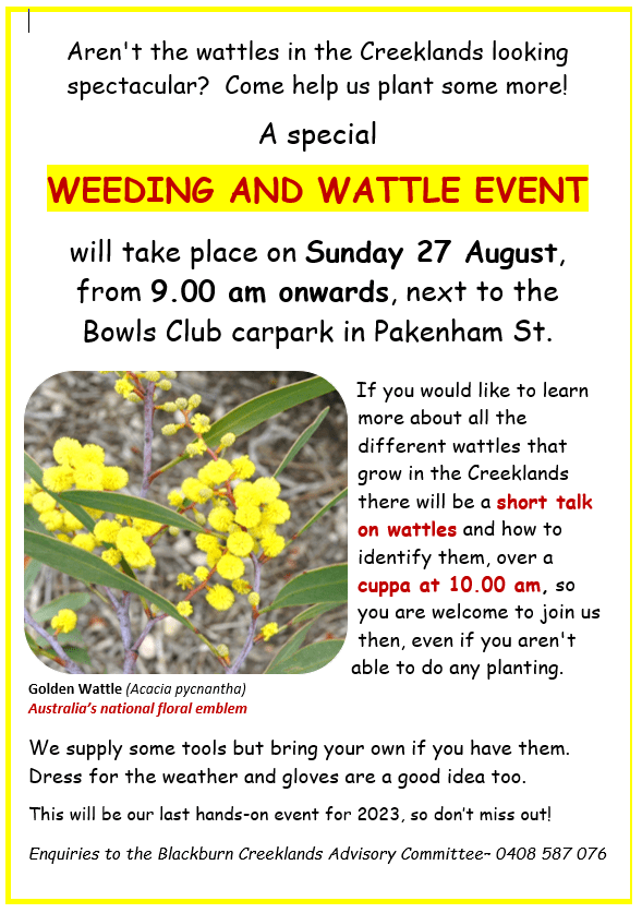 Pingback: Working Bee Thurs 24/8/2023 08:30-11:30AM | The Blackburn Creeklands