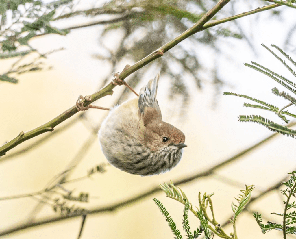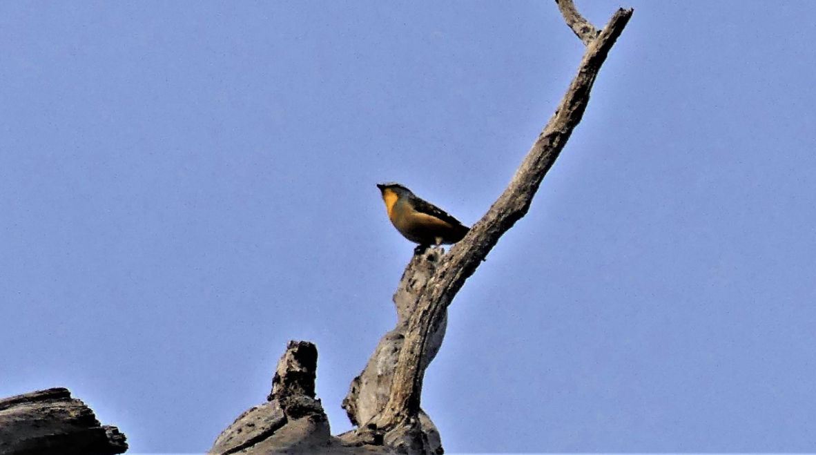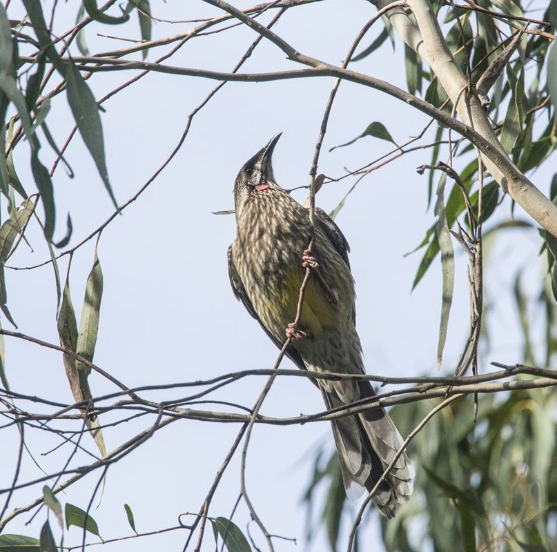 Last month, we listed the collective noun for Pardalotes as being an “Invisibility of Pardalotes“. They are usually “invisible” because they feed high up in the canopy, they are small (wing 53-60 mm, weight 6-12 grams) and yet make a lot of loud calls – so you know they are there. Not to be deterred, our staff photographers managed to take a photo of a pardalote at high magnification: