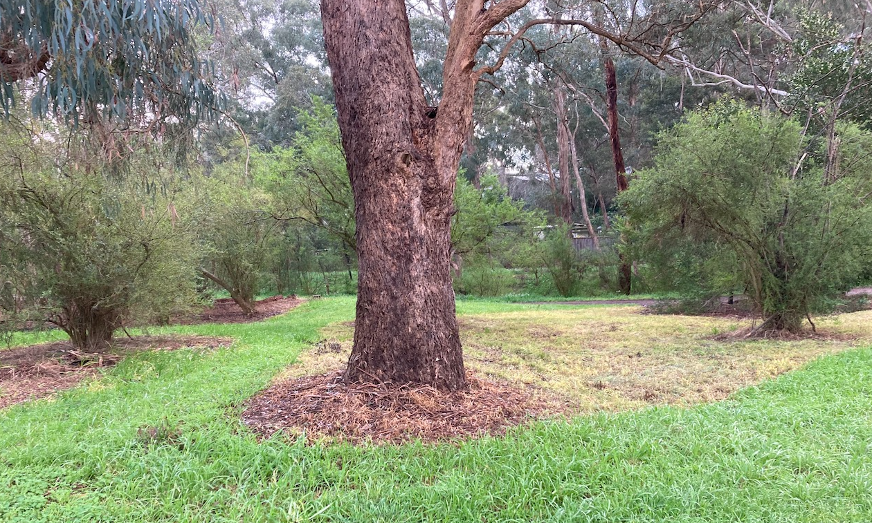 In relation to the “Maze” project, for several reasons including the “Millennium Drought (1996 – 2010)”, a lot of the maze has reduced to a monoculture of middle-storey Tree Violets under the canopy of larger eucalypts as shown in our photo below: