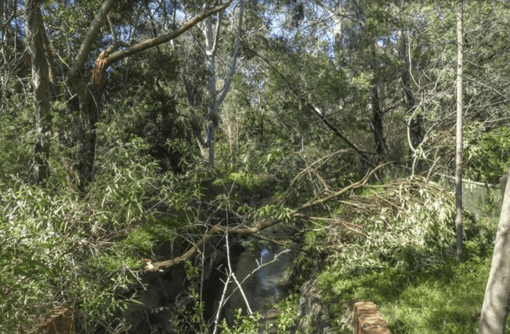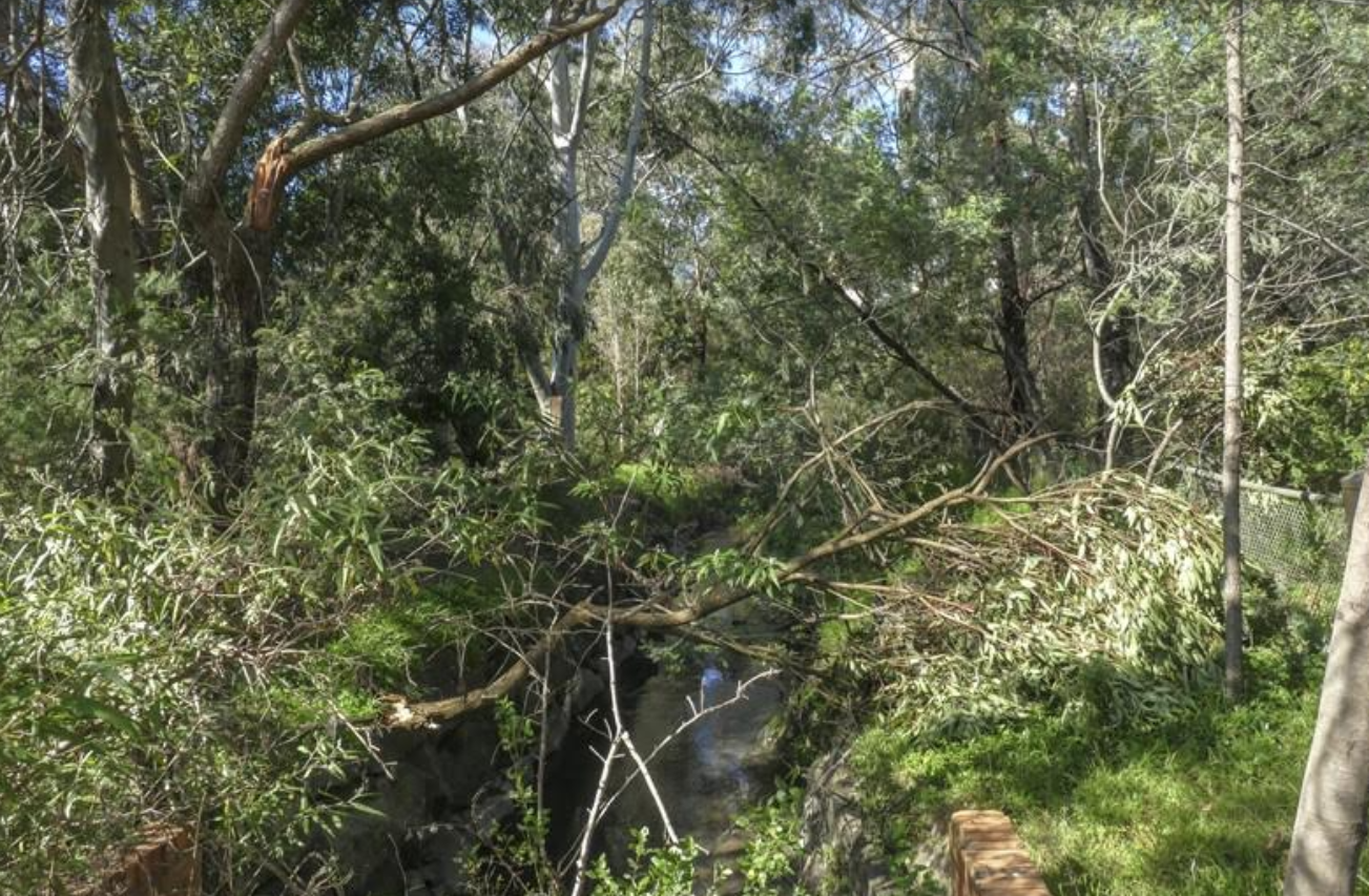 Strong winds early in the month caused damage in the canopy (near the Pakenham Street bridge):