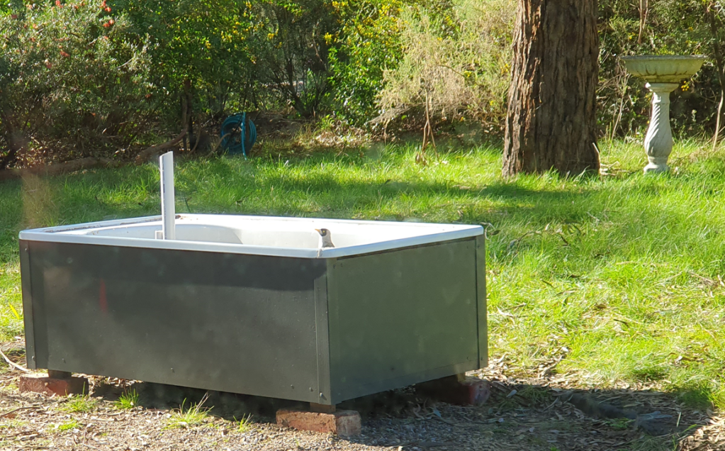 We know several of our Friends in the Corridor like to have a bird bath available for our avian friends (see upper right in the photo below) – especially in summer when suitable drinking and cooling water can be scarce – but this new one takes things to a new level: