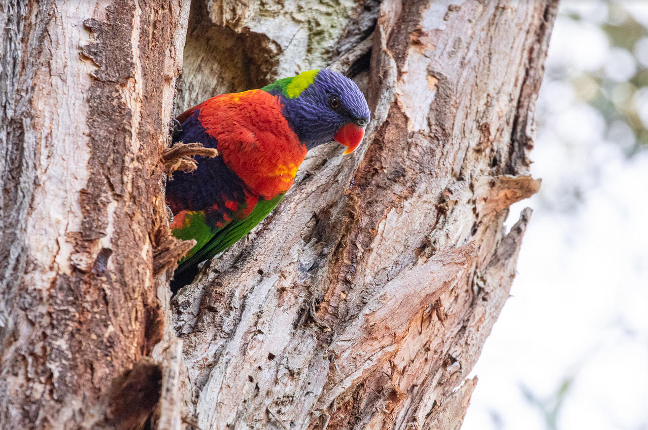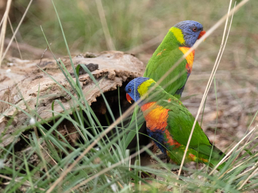 Lorikeets need nest holes – and will even nest at ground level if they can’t locate a better option despite higher level risks with predators. Lindy (#1 and #3) and Greg (#2) took these shots when doing a bird survey earlier in the month which seem to capture that decision making…