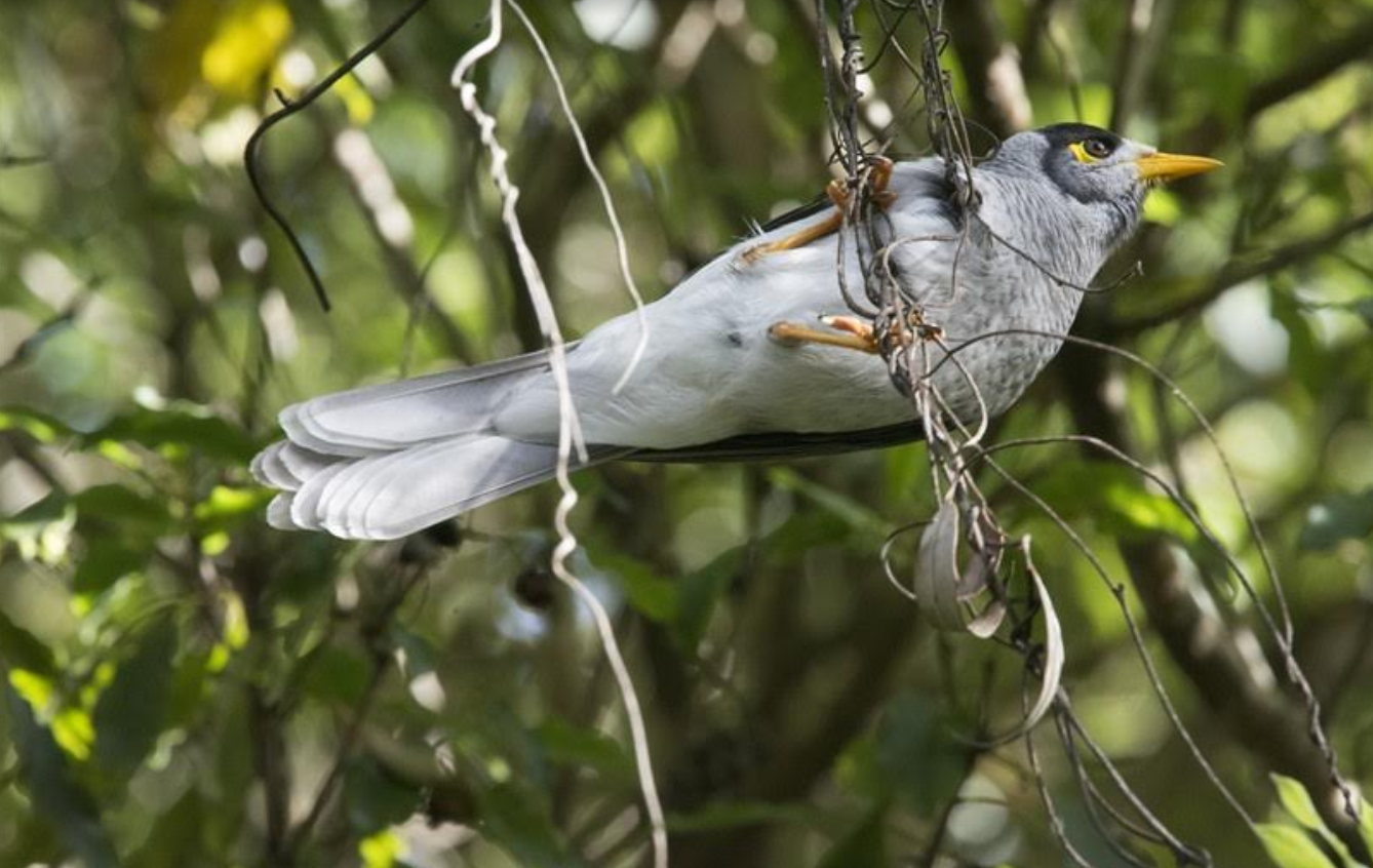Oddly, the lonely Noisy Miner testing the new facility seems to be avoiding a co-resident submarine!