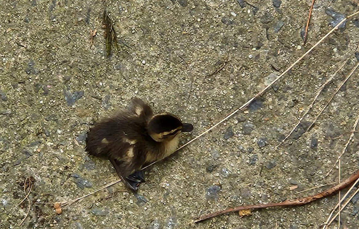Sadly, there was one duckling having trouble keeping up with its siblings: