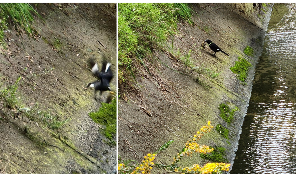 But as I was watching a straggler struggled to keep up with the rest and, wondering how it would survive, it stopped to take a rest maybe 10 metres back from the group and was snatched up by a Pied Currawong!! A bit of a shock! No wonder the other birds hate Currawongs.