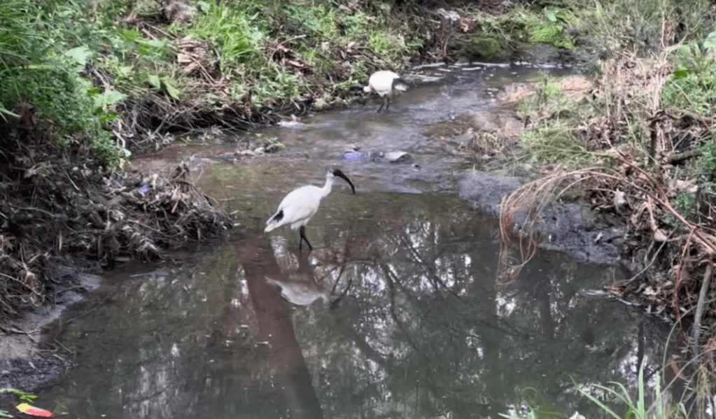 Lisa spotted this pair of White Ibis (Theskiornis molucca) feeding in the creek (dare we say it, probably having lost their way to the tip!):