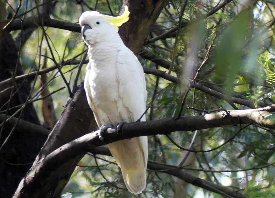 Firstly, this Sulphur-crested Cockatoo (Cacatua galerita) travelling solo is an unusual sighting in the Creeklands – in the Waratah Wetlands (thanks Russell):