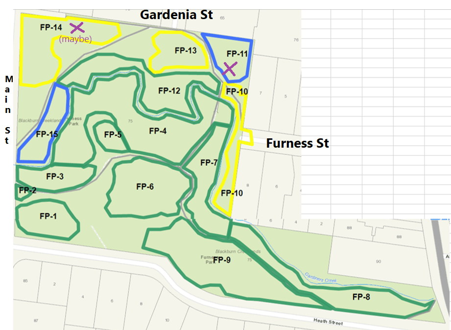Our plan for Thursday morning of 19th October is to return to “far Furness” for regular maintenance hand-weeding in FP-11. If time and people resources permit, we may also do some weeding around the recent Community Working Bee plantings in FP-14.