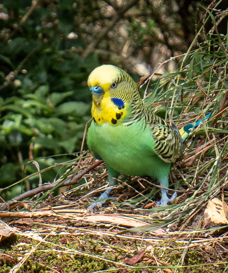 - Another species for the Creeklands – a Budgerigar (Melospitaccus undulatus). Given that the normal range of the species is north of the Great Dividing Range, we must have Budgie Smugglers in operation – or someone has left the cage door open! Ken snapped the bird near the new wetland near Laurel Grove (on the northern side of the creek) eating grass seeds. In Ken’s words: