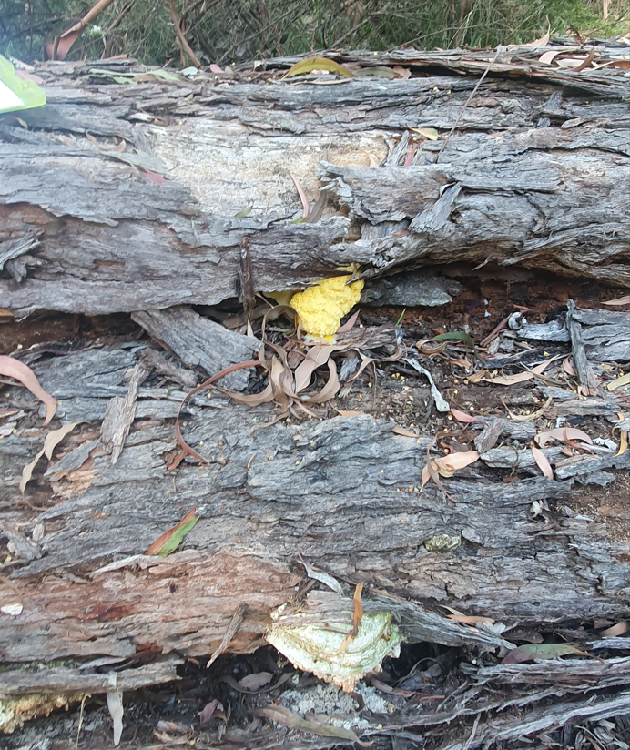 - Dog Vomit slime mould above a fading “crumpet fungus”.