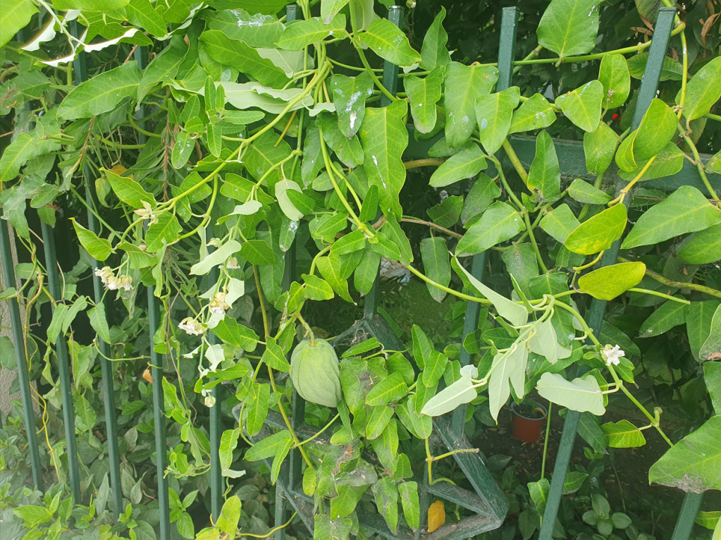 “False choko” stems from the appearance of its fruit – they look like Chokoes – but the “fruit” is not hard like a choko – it is a soft pod which goes woody as it ripens – containing hundreds of dark seeds attached to silky hairs designed to be distributed by wind and water – or attachment to clothes and animal fur.