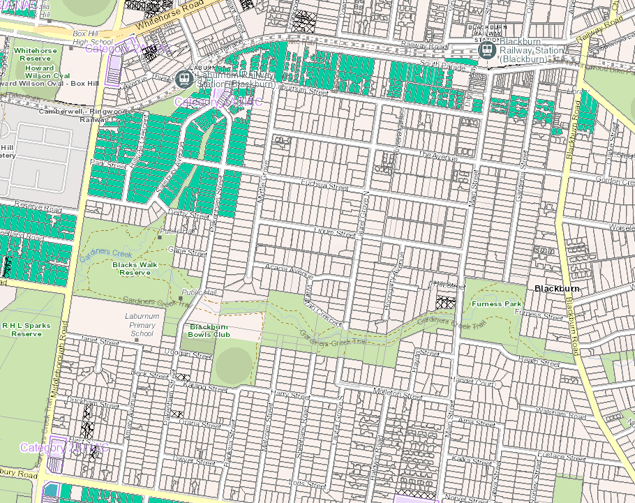 Generally, eligible sites are in a General Residential Zone (GRZ) and within 800 metres of a railway station or an Activity Centre. Most of our park is surrounded by Neighbourhood Residential Zone (NRZ) properties – the exception being the western boundary of Blacks Walk (over Middleborough Road). This results in there generally being a large buffer around the park and its corridor for the protection of habitat and biodiversity.