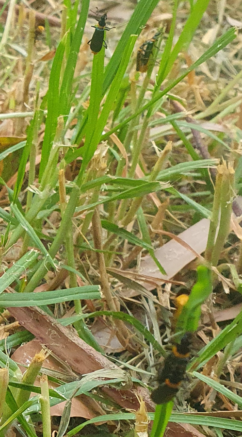 - Plague Soldier Beetles on grass and other foliage this month – clearly the breeding season!