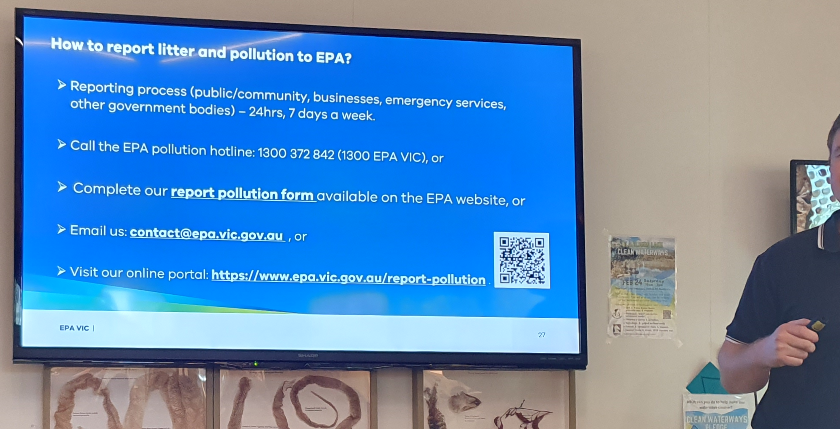 In general, park problems such as pathway obstacles are best reported via the Snap-Send-Solve app. In fact, congratulations to the Whitehorse City Council – they recently won a Victorian award with SSS. However, we learnt that pollution events are an exception – due to the possibility of time delays in addressing events like spills. Sometimes, quick responses are needed to identify sources before they clear.