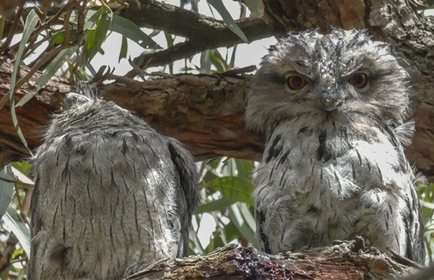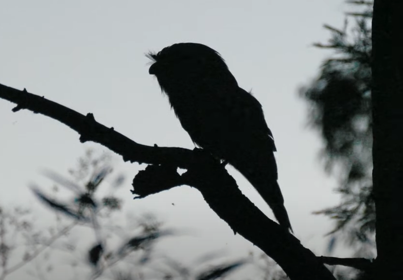- The sad silhouette of an adult male Tawny Frogmouth calling unanswered clipped from a movie. He is the remaining adult of a pair whose partner was found dead on the ground near their nest tree on 22nd December while he was still caring for their chick on the nest. We believe the chick might also have been killed – it fledged around 13th January but is also no longer seen or heard in his territory.
