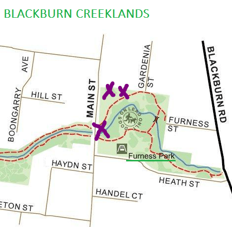 The plan for this coming Thursday morning is to weed between the path and the creek north in Furness Park alongside the track from Main Street to Gardenia Street at the Main Street end.