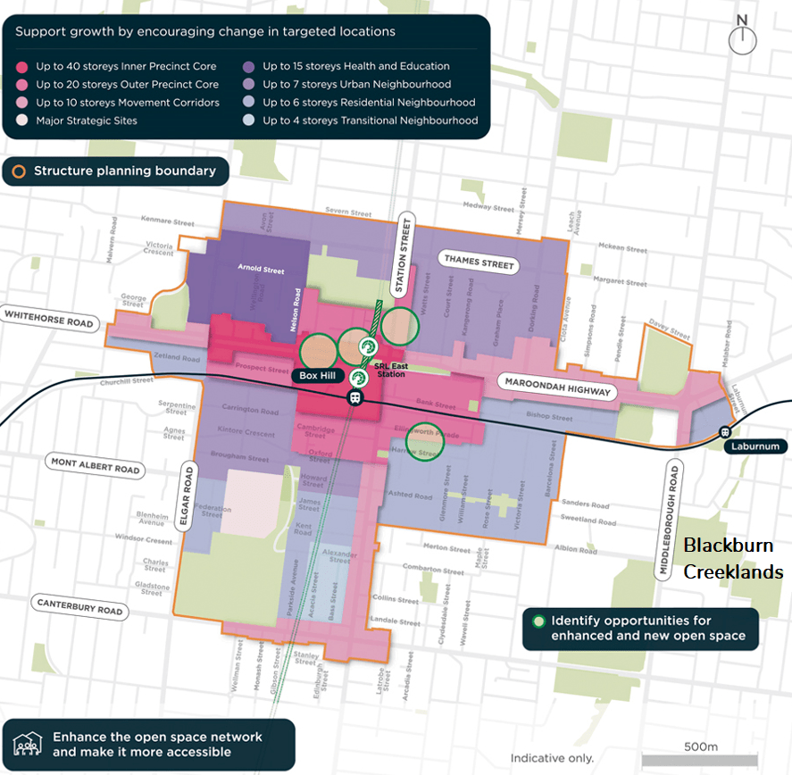 The State Government’s Suburban Rail Loop East project has revised plans for Box Hill and the precincts around other SRL railway stations in the project’s first stage.