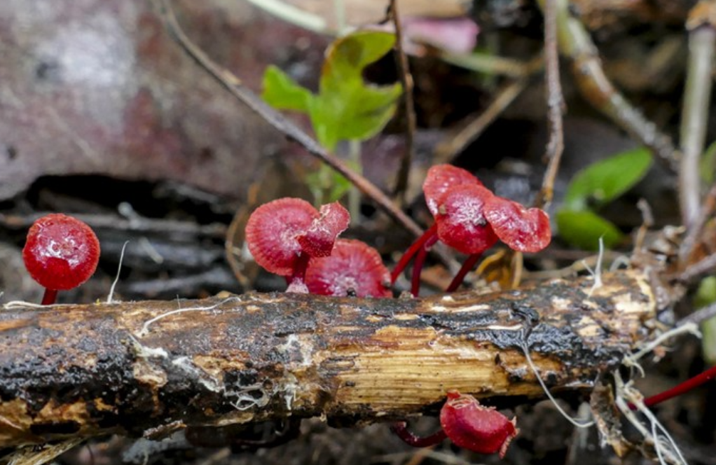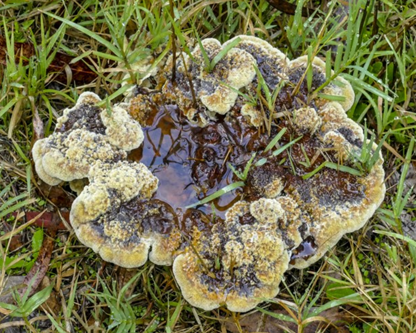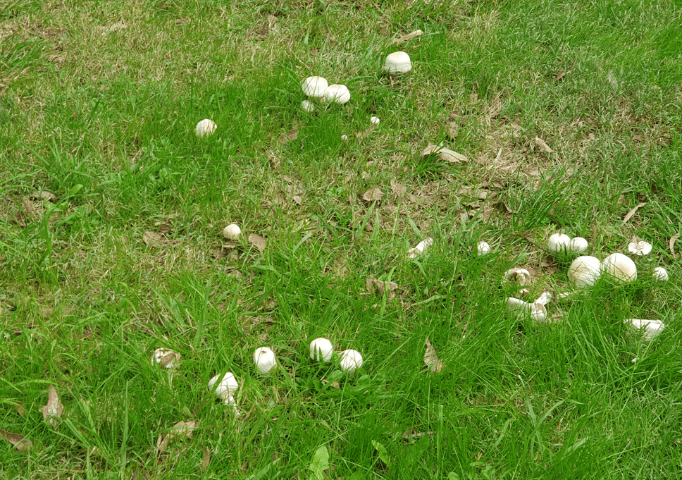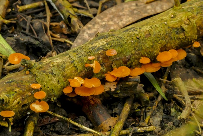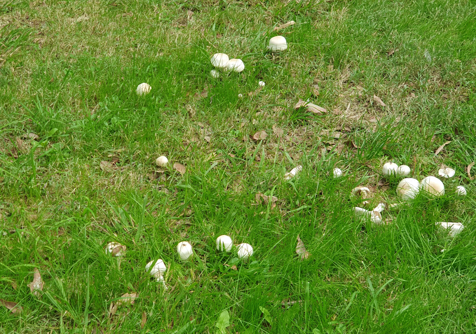 Lots of fungi have been coming up following the soaking rains – including those “dangerous” fairy rings. Unfortunately, these also include the highly invasive Orange Pore or Orange Ping-Pong Bat (Favolaschia calocera) fungus. That fungus is believed to have originated in tropical Africa but has invaded many parts of the world including non-tropical Switzerland !