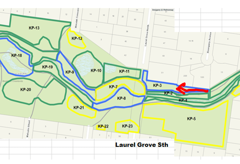 The KP-3 zone has rather a long tail to the east which we’ve overlooked somewhat. The plan for Thursday, 13/6/2024 is to weed the tail out from the boundary of last year’s plantings to KP-3’s eastern limit. We’ll weed what we can do efficiently without too much disturbance – then mulch any bare areas with a thinnish layer of euc leaf litter as per George Paras’ recommendations.