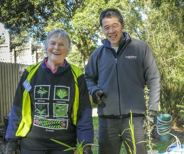 Megan’s tee-shirt shows Murnong (Yam Daisy) and Lomandra which were planted on the day – as well as Chocolate Lily and Garawang (Apple Berry) which are also locally indigenous food plants. Karkalla (pig face) is a coastal plant.