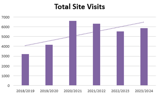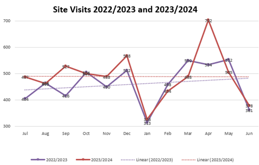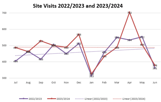 Our web-site and its associated Facebook page form an important communication channel with the community. We measure web-site usage by “site visits” rather than by single page “hits”. The latter are overly influenced by photo gallery activities (each photo viewed counts as a page “hit”) which means the content for any month can skew the activity reported.