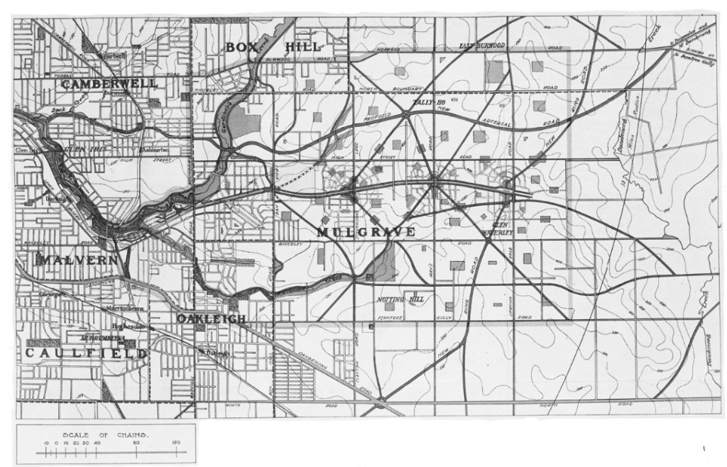 - A new arterial road linking today’s Camberwell through to Burwood by initially following the former Ashburton Creek (now underground) – eventually to the junction of the Burwood and Mountain Highways.