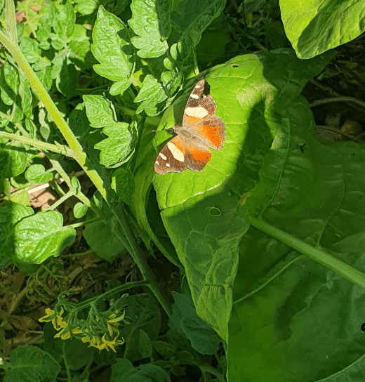 Speaking of butterflies, park neighbours sent us this photo of an Australian Admiral (Vanessa itea) butterfly resting in their vegie patch. This butterfly is sometimes called the Yellow Admiral. The “white” patches on the forewings caught in bright sunlight are actually yellow.