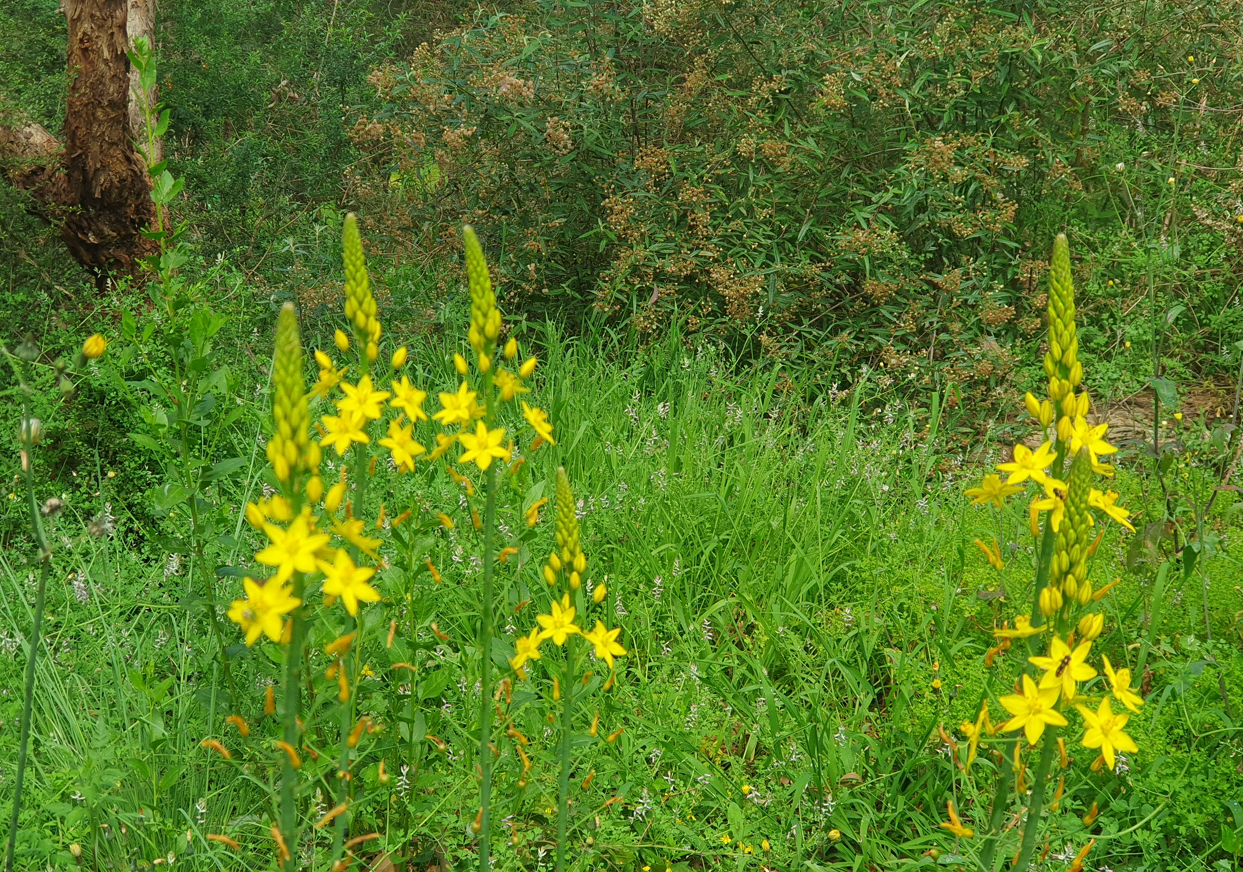 Here are a mixture of other sightings – plants flowering in all sorts of ways including a starburst of Bulbine Lily flowers, a Common Flatwing damselfly and others: