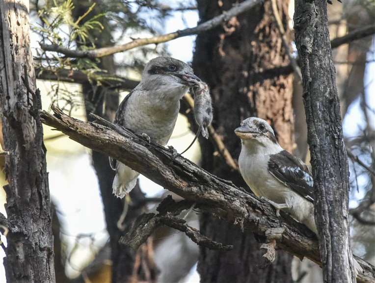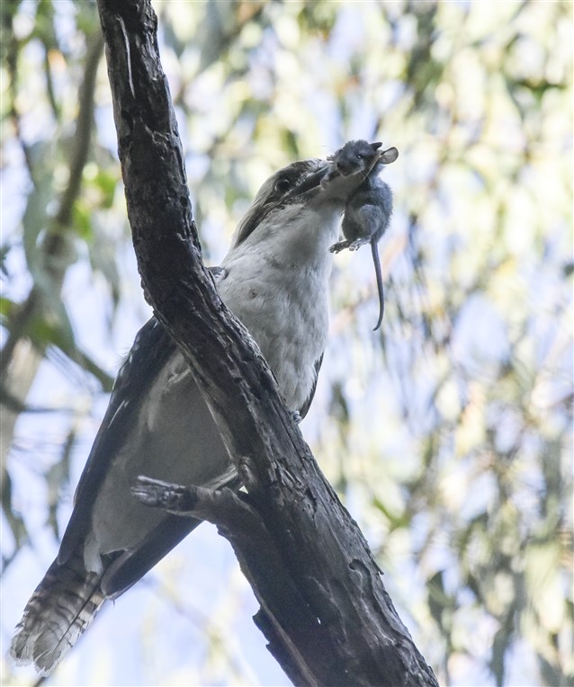 Our sequence shows a Kookaburra parent bringing a rodent meal to one of its young. Some of today’s retail household rodent baits contain poisons called Second Generation Anticoagulant Rodenticides (SGARs) which break down very slowly – so remaining in the food chain for long periods. The rodents are not killed instantly by the poison – they may live for a week, often becoming weaker and more disoriented as the poison acts – thereby making them easy prey. Birds such as Kookaburras might then eat a poisoned rat or mouse and become poisoned themselves. Also, SGAR poisons tend to accrue in the body. As we can see, the poisoning might commence before a bird is even able to hunt for itself.