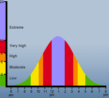 Yes, the diagram at left shows how UV varies with time-of-day in Summer.