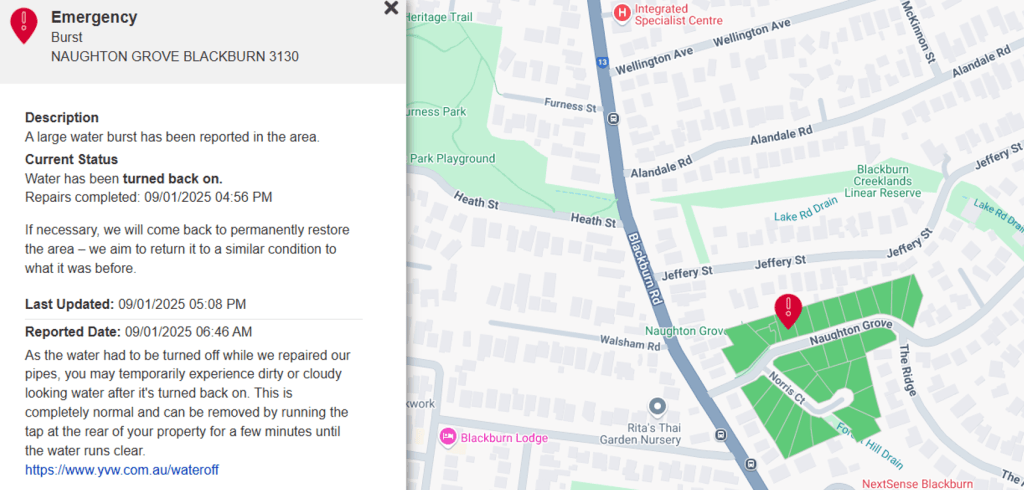 In this particular case, the culprit seems to have been a major water main burst in Naughton Grove – in the creek’s catchment area.