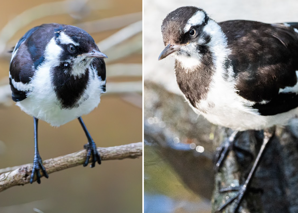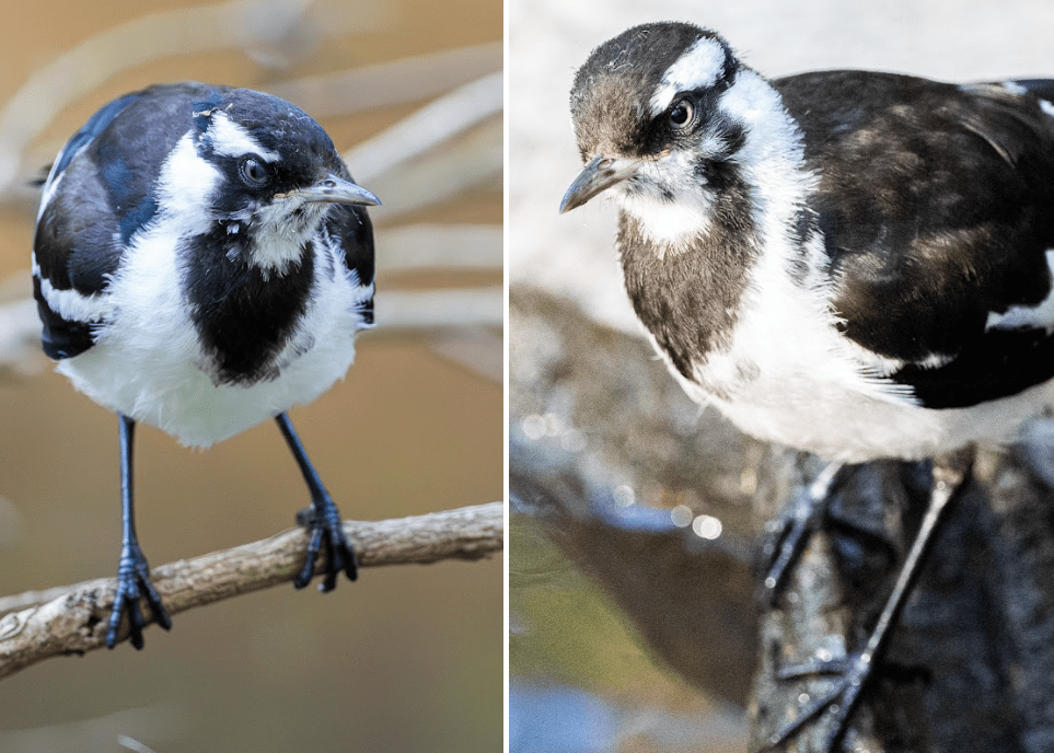 We’ve published this photo before – showing a male Mudlark at left and a female partner at right: