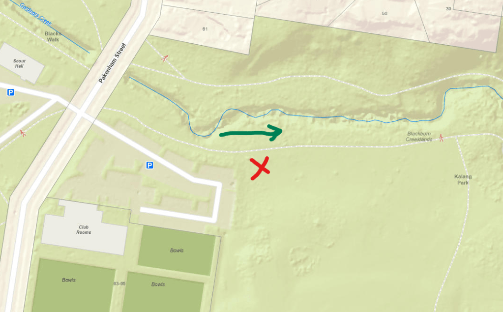 - Please be mindful of the creek bank too – there are sudden drops on the northern side.