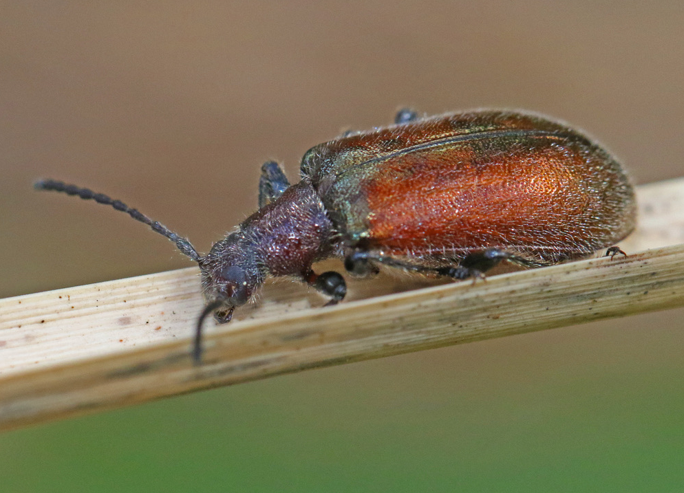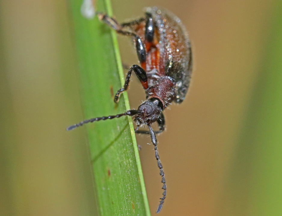 - Brown Darkling Beetle – Three pics of a Brown Darkling Beetle, Ecnolagria grandis, a very common small beetle in late summer. Their larvae feed on detritus such as dead leaves.