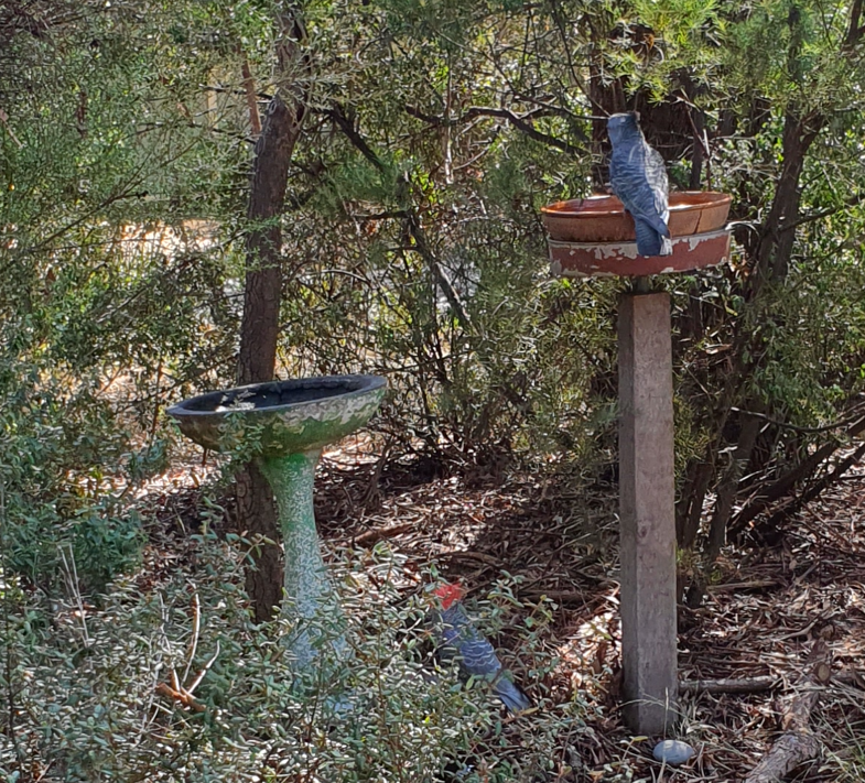 Gang-gang Cockatoos are also back in town – flying in and out of the park along the Myrtle Grove corridor up to Laburnum Street (where they seem to like Pin-oak acorns). The males have a very bright red head. Don’t forget to put some clean water out on those hot days…