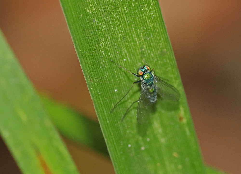 - Parentia sp. (possibly P. dispar), a member of the Long-legged Flies, Family Dolichopodidae. They are a small fairly common little fly, usually found near water. They eat small soft bodied insects such as aphids or thrips.
