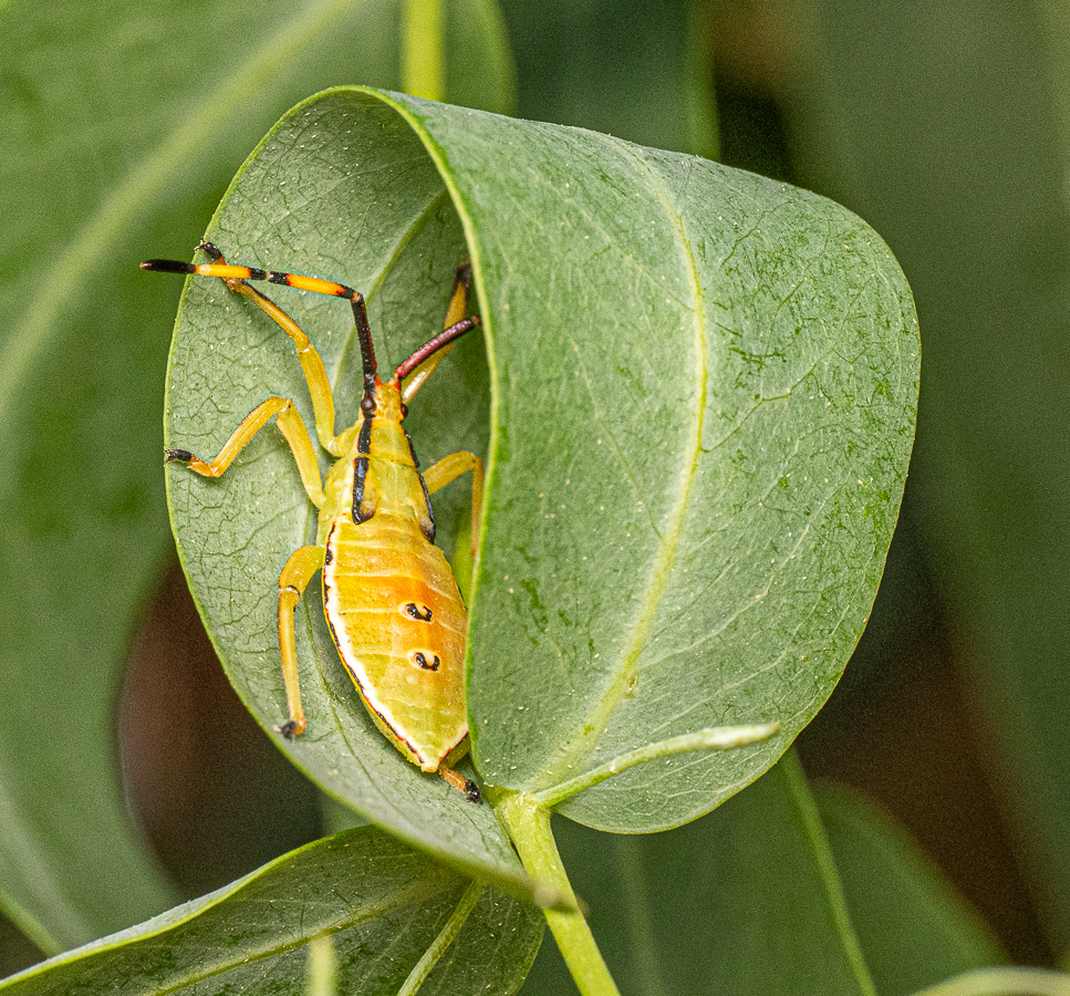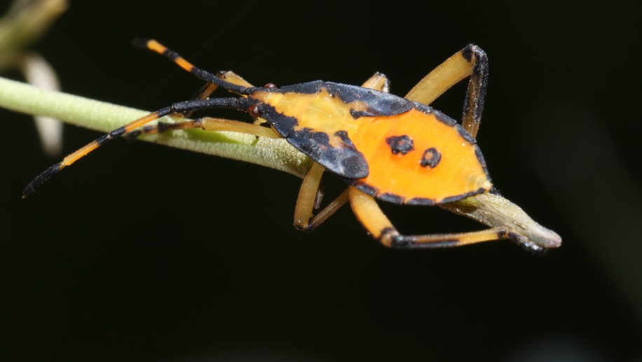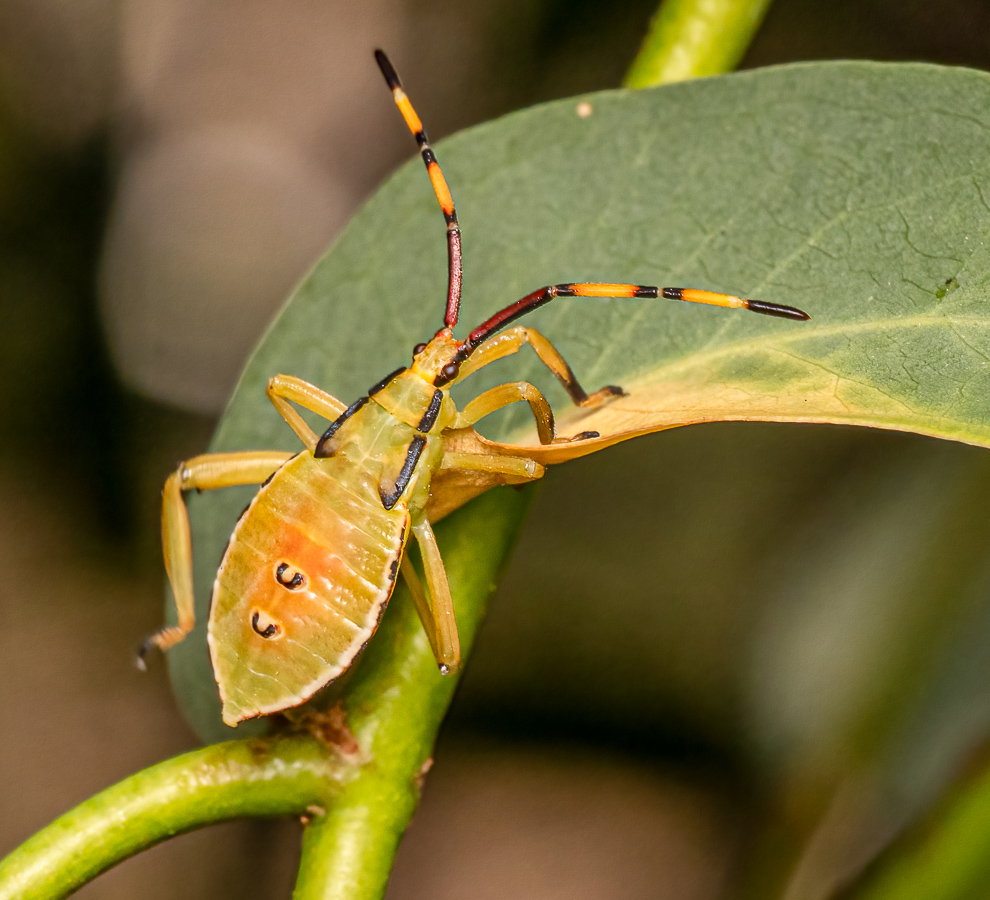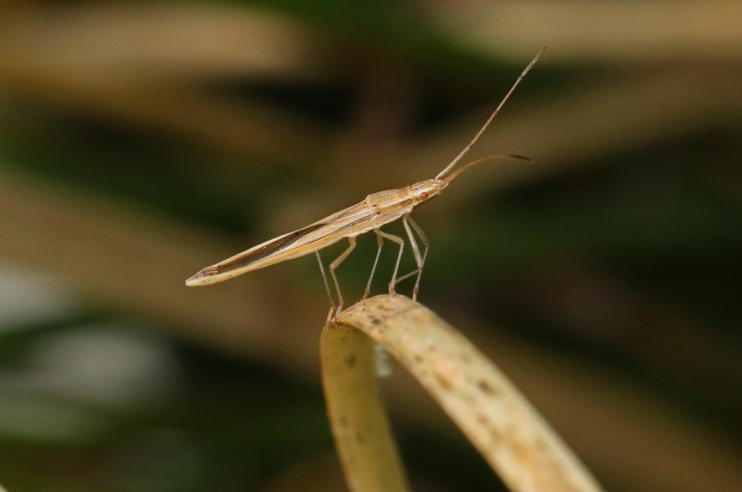 - Long Broad-headed Bug (Mutusca brevicornis): these rather common, but often overlooked, members of the ‘bug family’ Hemiptera, feed by sucking fluid out of plants using their long proboscis.