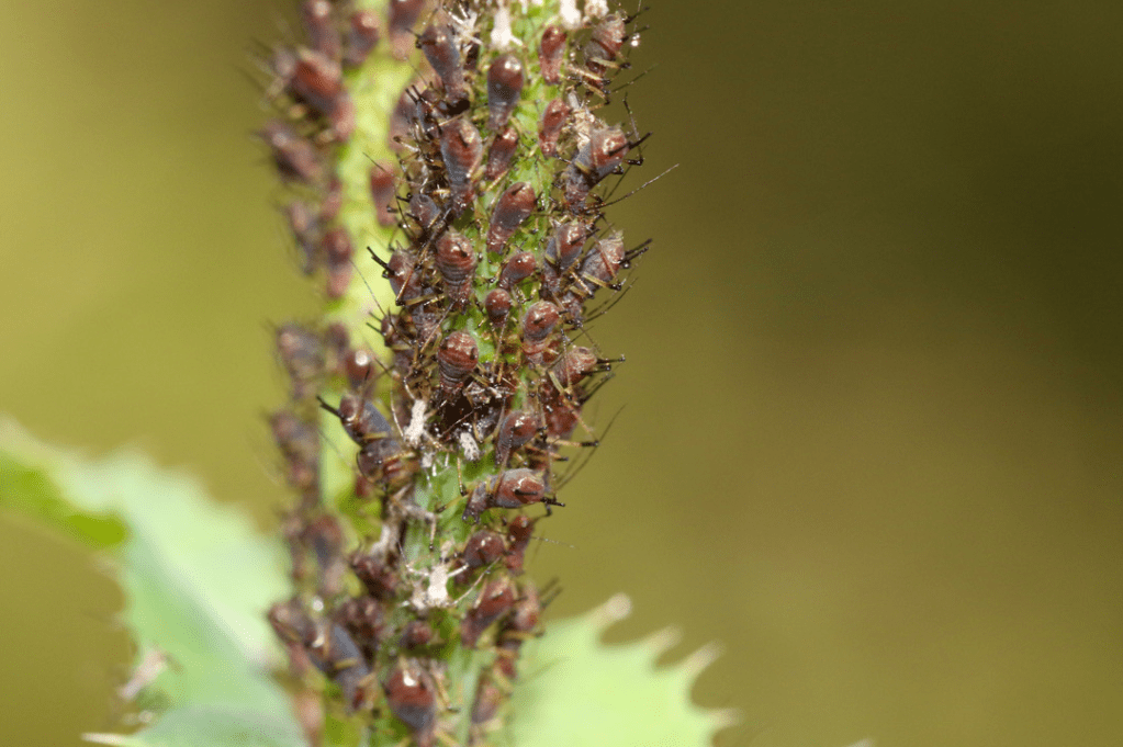 - Black (Brown) Aphids Aphis sp: there are many different species of Aphid to be found locally . All are sap-sucking insects that can be a real pest in domestic gardens. They can breed rapidly.