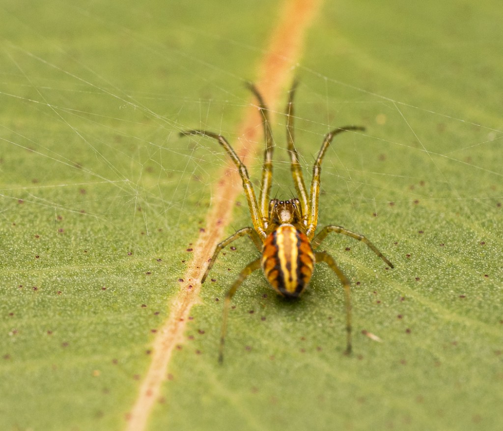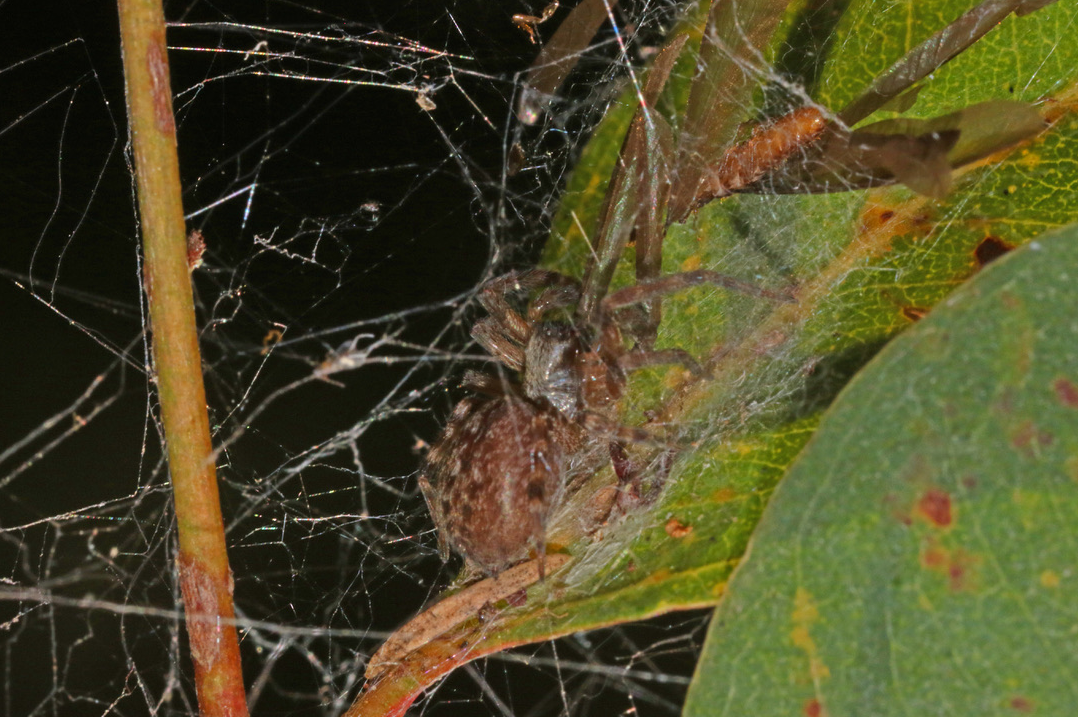 - Comb-tailed or Dwarf Sheet Spider (Scotospilus sp.): a member of the typical Comb-tailed or Dwarf Sheet Spiders. Often found under bark, these spiders spin a very delicate web that looks like a sheet.