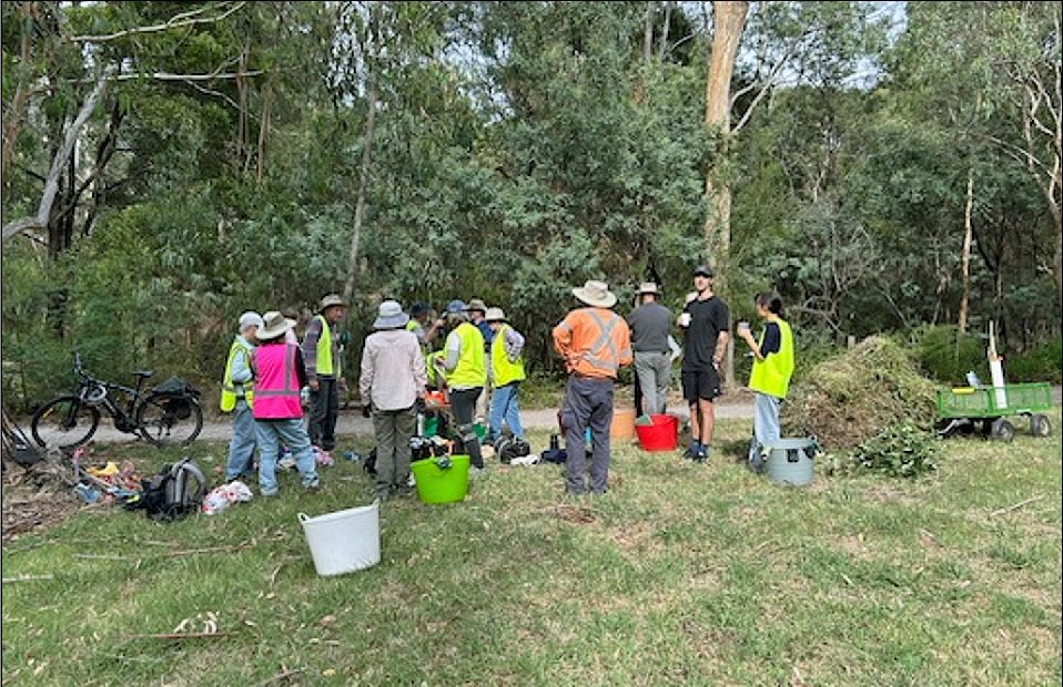 Our photo shows the inaugural meetings near Deakin Uni in early March in the office (Gardiners Creek Reserve) – with the Education sub-committee (foreground), the Advocacy and Communication/ Marketing committees combined under the tin shelter, Projects/Revegetation behind the BBQs and other groups are out of frame. The Blackburn Creeklands park is well represented with three members on KKA sub-committees.
