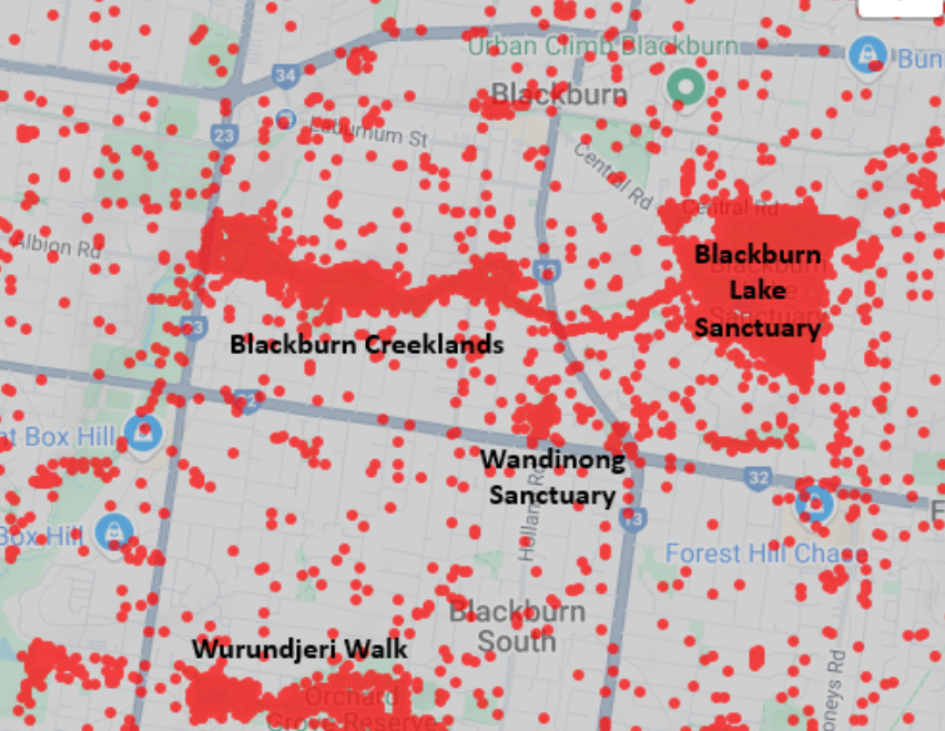 *The Atlas of Living Australia (ALA) is hosted by CSIRO and is an online repository of information about Australian plants, animals and fungi – sightings in particular. It is accessible to all and shares iNaturalist sightings as well as historical data going back to 1850. If you’d like to search the ALA records for the City of Whitehorse please click here.