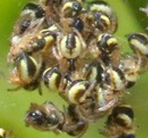 - Allodapine Bee (Exoneura sp.): these bees are one of several related species often called ‘Reed Bees’. There are lots of different local native bee species.