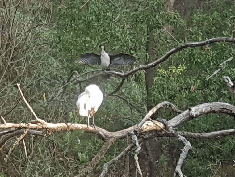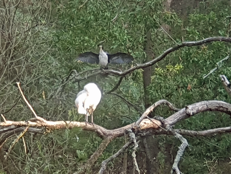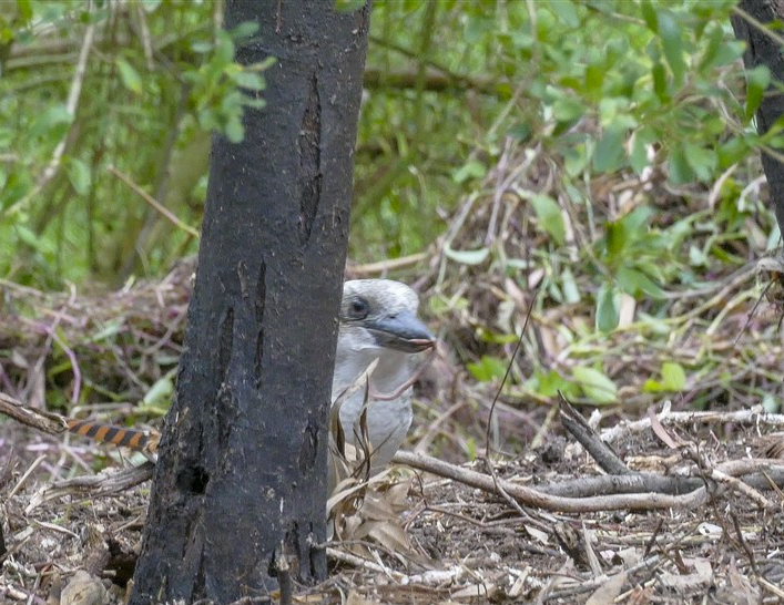 Pied Currawongs are flocking at the moment – and they saw a golden opportunity for a feed during and after the weed clearance. This is normally the Kookaburras’ job – so there were some interactions: